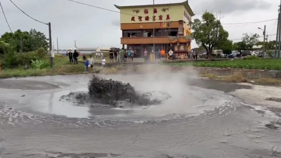 Um vulcão de lama entrou em erupção na quarta-feira (12) em Taiwan, lançando jatos de lama e chamas que chegaram a dois metros de altura.